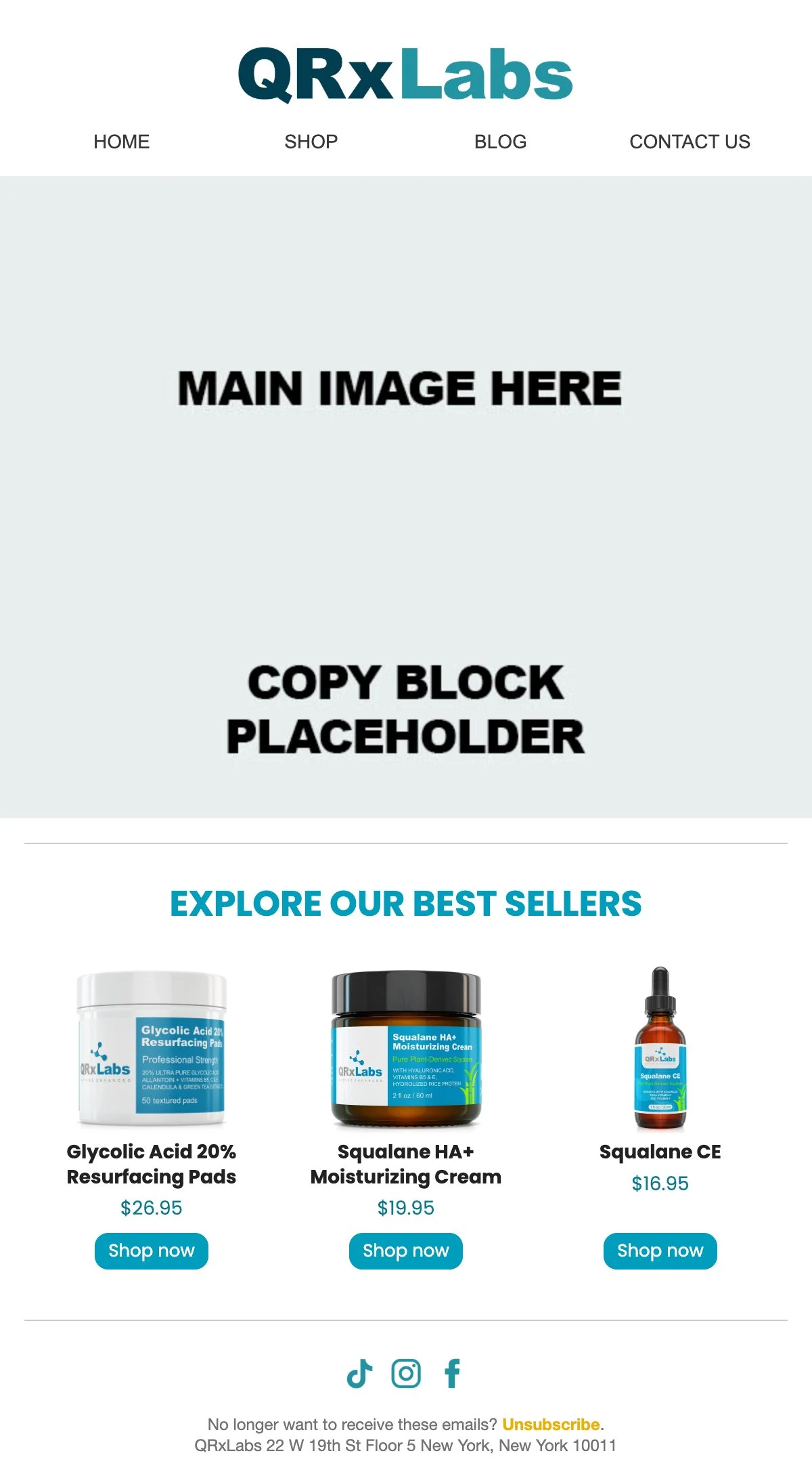 Both the website and email relied on a simple structure with a hero image followed by copy blocks, offering little visual variety. Key ingredients were misrepresented with inaccurate imagery, and the routine section was overly copy-heavy, making information difficult to scan. Overall, the experience lacked clarity, cohesion, and engaging elements.